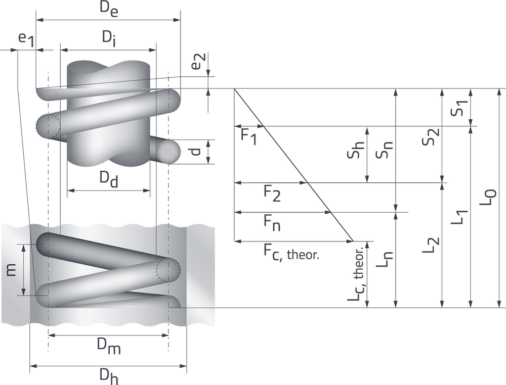 So that you can enter the dimensions and characteristics of your spring correctly in the form, you will find an overview of the abbreviations used below.